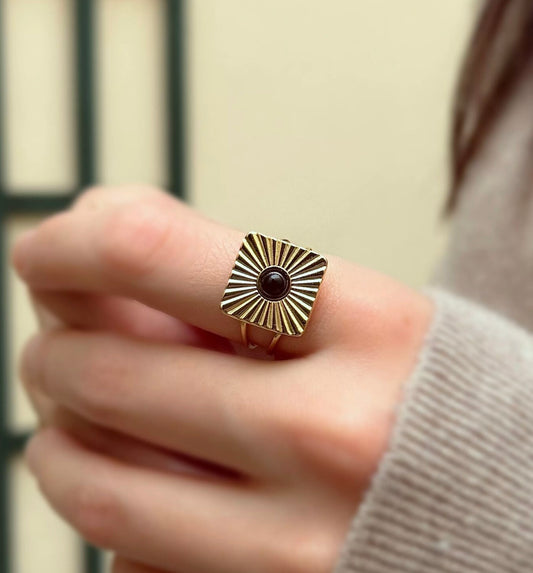 Bague anneau avec pierre naturelle carrée