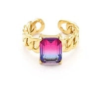Bague acier ajustable chevalière Cristal fuchsia maille Noël