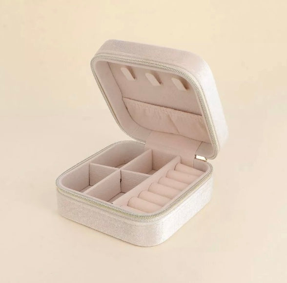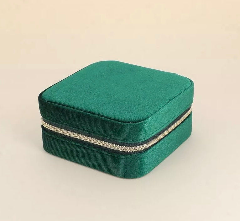 Boîte à bijoux en velours agrémentée d'une fermeture éclair en laiton doré.