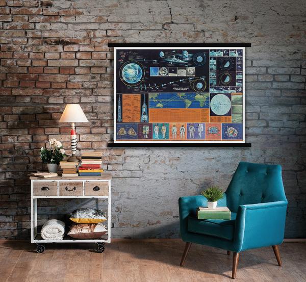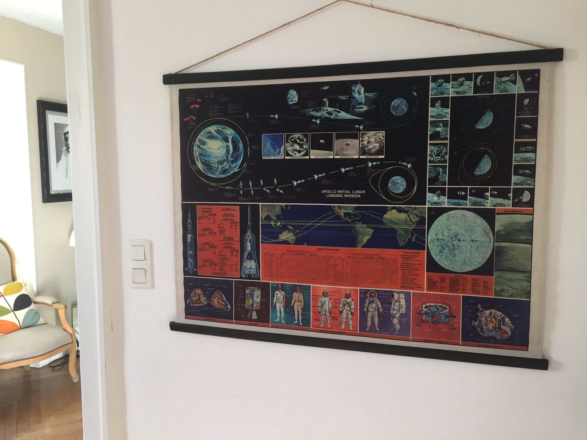 Carte de la mission Apollo en coton brut lui donnant son coté vintage. La carte est une carte s'inspirant de l'esprit des cartes du 19ème siècle. Super dans une chambre d'enfant ou un cabinet de curiosités.