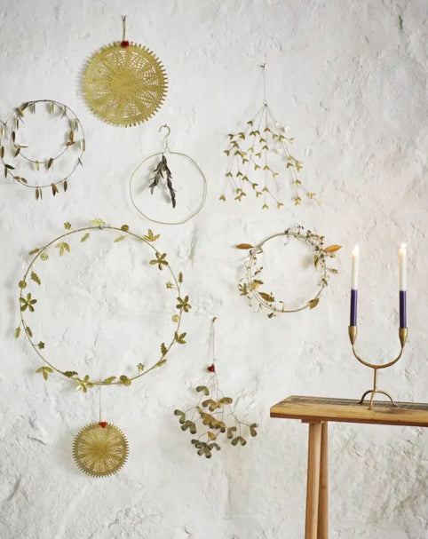 A suspendre au sapin de Noël mais surtout à des branchages, cette représentation de feuilles en laiton de chez Madame Stoltz est ce qu'il vous faut pour décorer rapidement un coin de fenêtre ou une table.