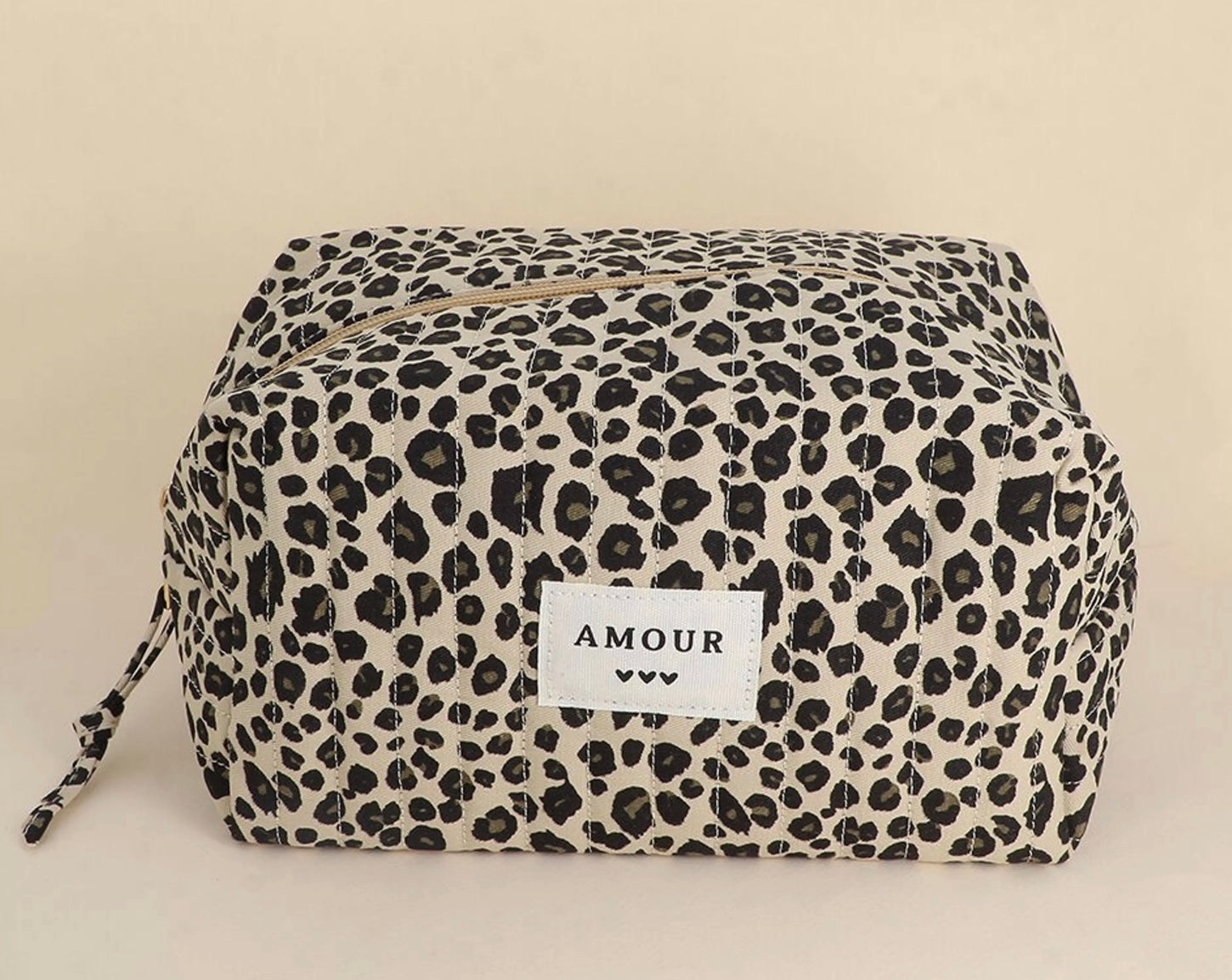 Trousse côtelée avec de jolis motifs imprimés et embelli par un mot ""AMOUR"" suivi de 3 coeurs.