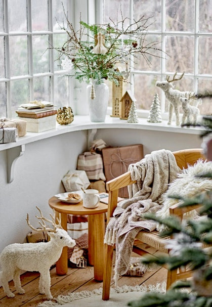Le renne Elmo de Bloomingville est une charmante figurine de grande taille, faite à la main, soigneusement ornée d'une surface douce en coton blanc, lui donnant une apparence accueillante et chaleureuse. Les bois méticuleusement fabriqués et l'expression faciale amicale transforment cette figurine en plus qu'un simple objet décoratif. Comme chaque figurine est faite à la main, chacune est unique et de légères variations peuvent survenir. Super à poser sur une cheminée, au pied du sapin, dans son entrée, ... tout de suite la magie de Noël s'installera 🎄✨
