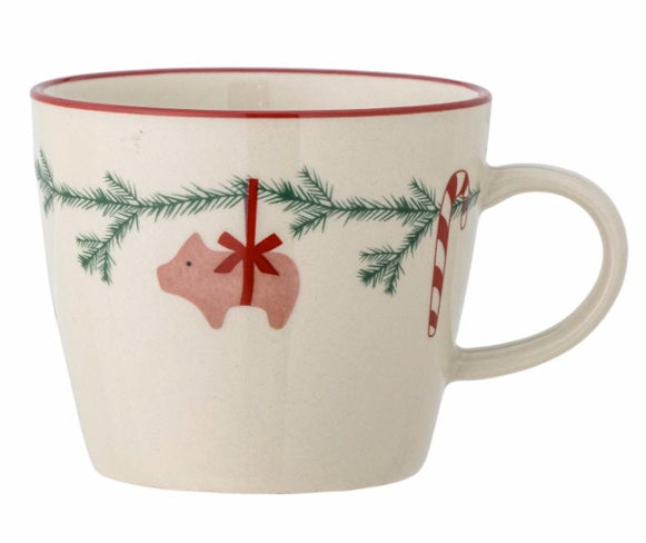 La mug Yule de Bloomingville a une forme classique et est parfaite pour toutes les boissons chaudes de Noël. Fabriquée en grès, la mug arbore un motif de Noël confortable et un bord rouge qui ajoute une atmosphère chaleureuse à la table.